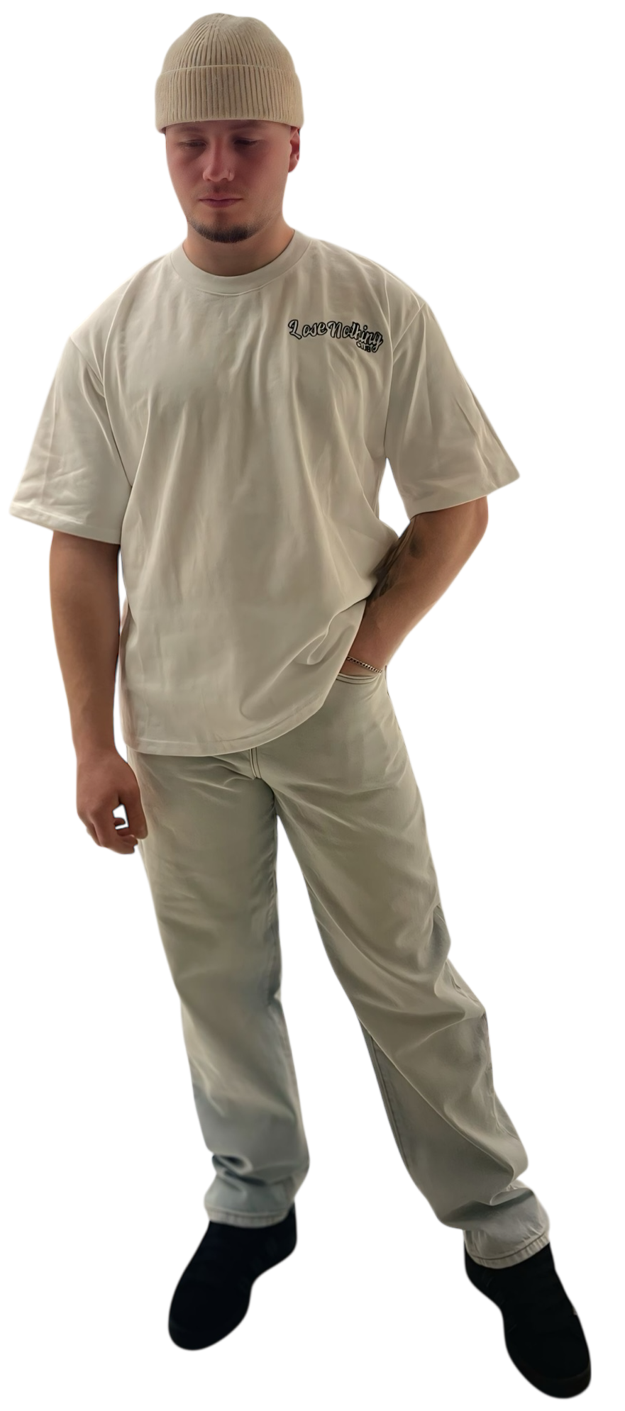 Details: White “LoseNothing” front logo embroidery; dark-blue back lettering print with small embroidered lettering